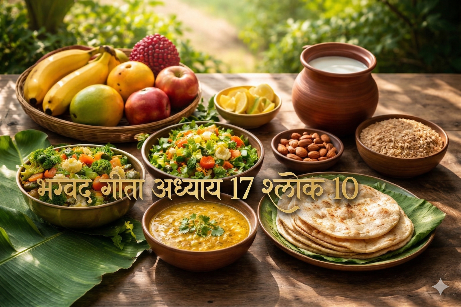 भगवद गीता अध्याय 17 श्लोक 10 पर आधारित यह लेख केवल शैक्षिक और आध्यात्मिक उद्देश्यों के लिए है। यह पेशेवर चिकित्सा सलाह, निदान या उपचार का विकल्प नहीं है। अपनी आहार योजना में कोई भी बड़ा बदलाव करने से पहले हमेशा किसी योग्य चिकित्सक या विशेषज्ञ से सलाह लें।